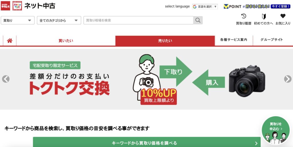 最大の特徴は、買取代金を現金ではなく「ソフマップポイント(またはビック買取マネー)」で受け取ると、買取金額が増額されるサービスがある点です。 カメラを売ったお金で、ビックカメラやソフマップで新しい家電やPCを買いたい場合に非常に有利です。