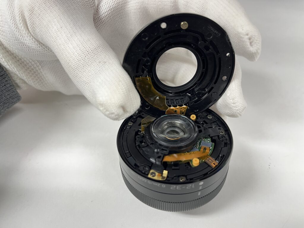 レンズの構造は非常に複雑に作られており、内部には電子経路や配線、とても小さいビスなどで精密に作られています。